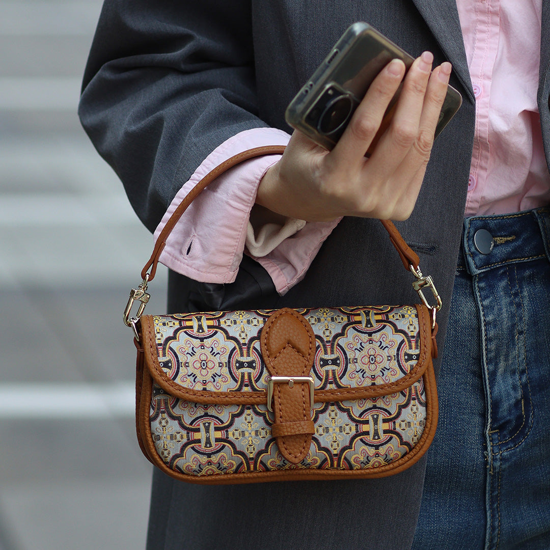 Mini Baguette Exquisite Evening Bag DIY Kit, Leather and Fabric Combination.