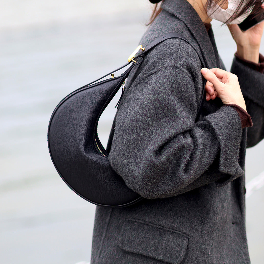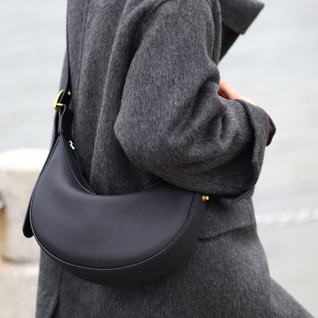 A minimalist crescent-shaped bag that blends smooth curves with a sleek silhouette—perfect for wearing under the arm or crossbody. This beginner-friendly DIY kit includes pre-punched leather parts, hardware, thread, tools, and step-by-step video instructions.